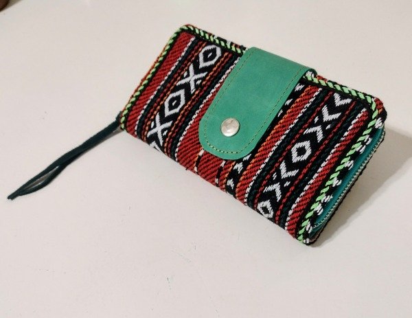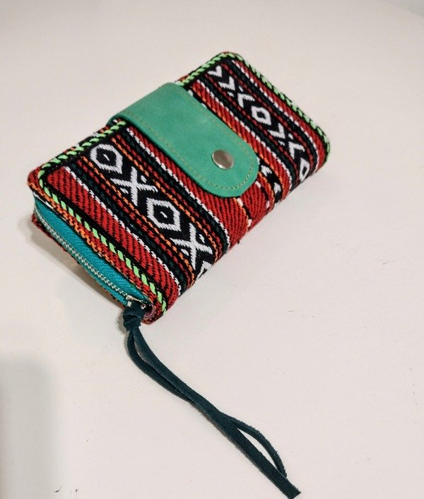 Billetera grande, un cierre. Múltiples compartimentos. Tarjetero, monedero interno con cierre. Muy completa!