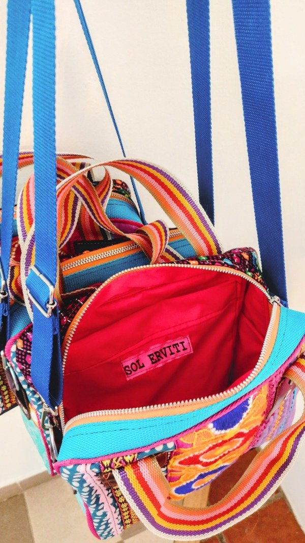 MORRAL de 24 cm de alto /25 cm de ancho y 10 cm de profundidad .Contiene cuero . Herrajes metálicos. Cierre reforzados de metal. Totalmente forrado. Contiene bolsillo traseros interior y exterior. Correa regulable.