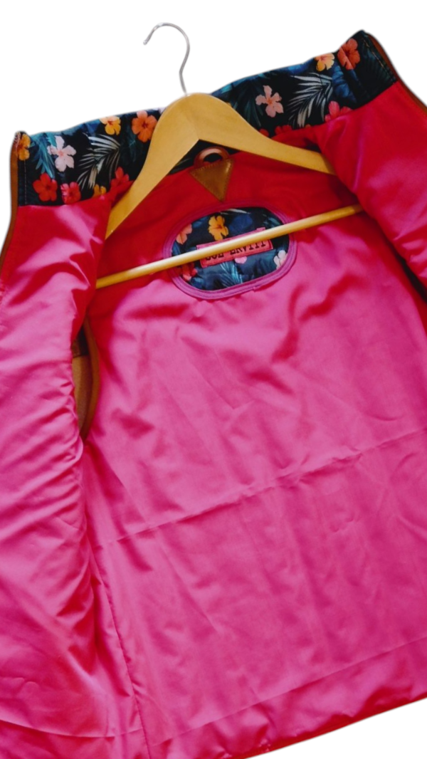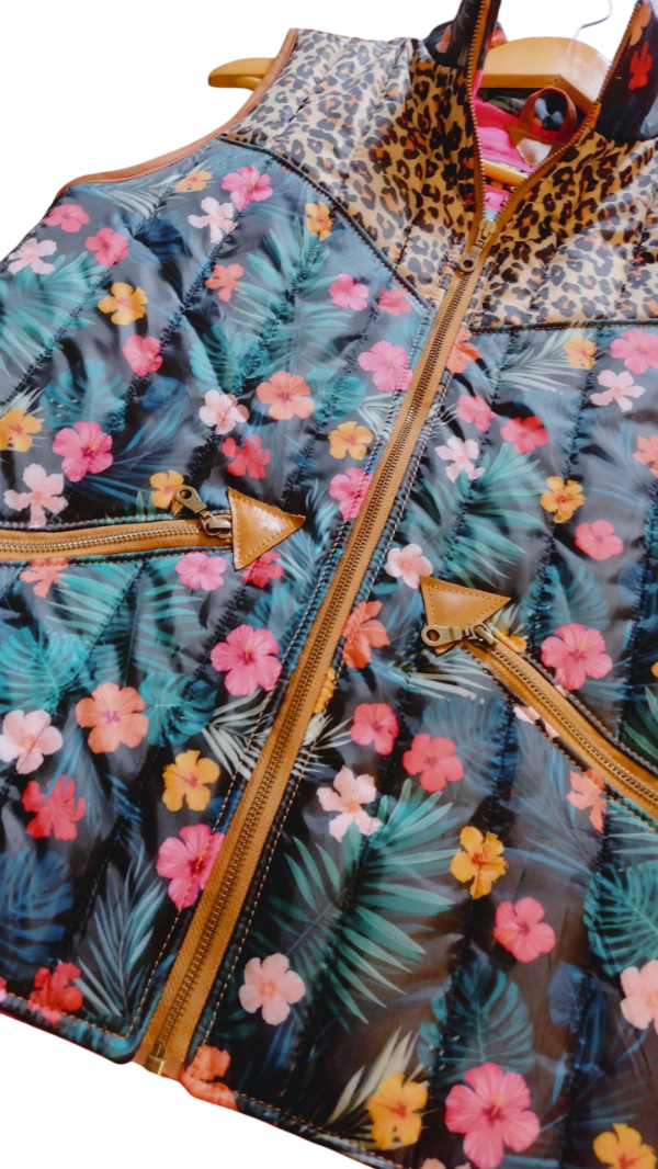 chaleco matelaseado impermeable , todo forrado. Tiene detalles en cuero. Cierres metálicos reforzados . Medidas: largo 68 cm. Ancho de pecho : contorno de pecho 104 (es un Talle M, amplio). SUPER HERMOSO!!! ♥️