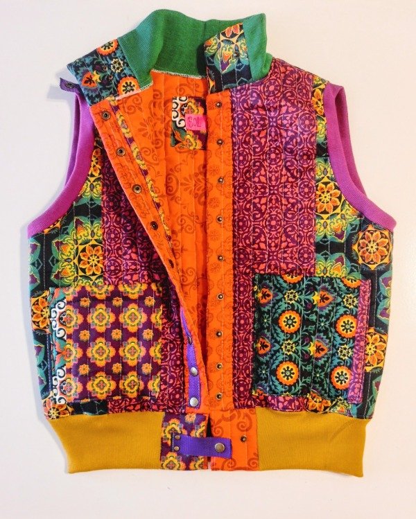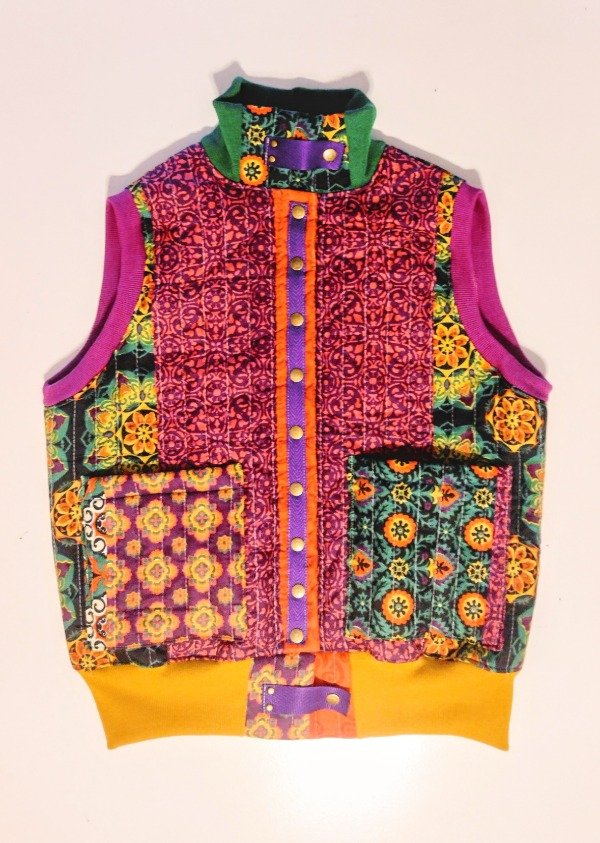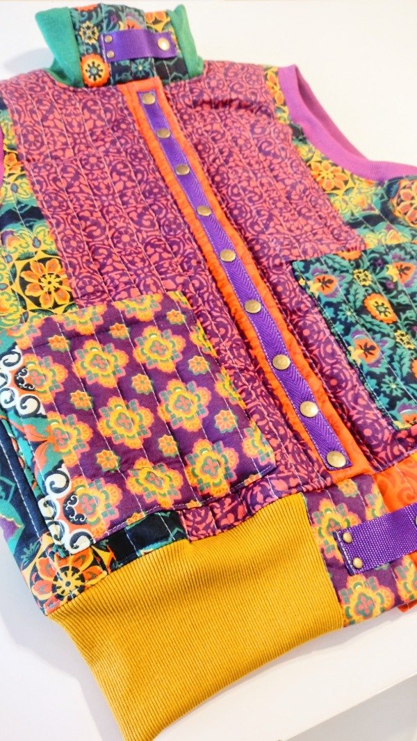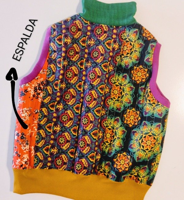 chaleco, matelasseado.forrado. Broches y tachas metálicos. Medidas: largo total: 65 cm. Ancho de pecho : 58cm.