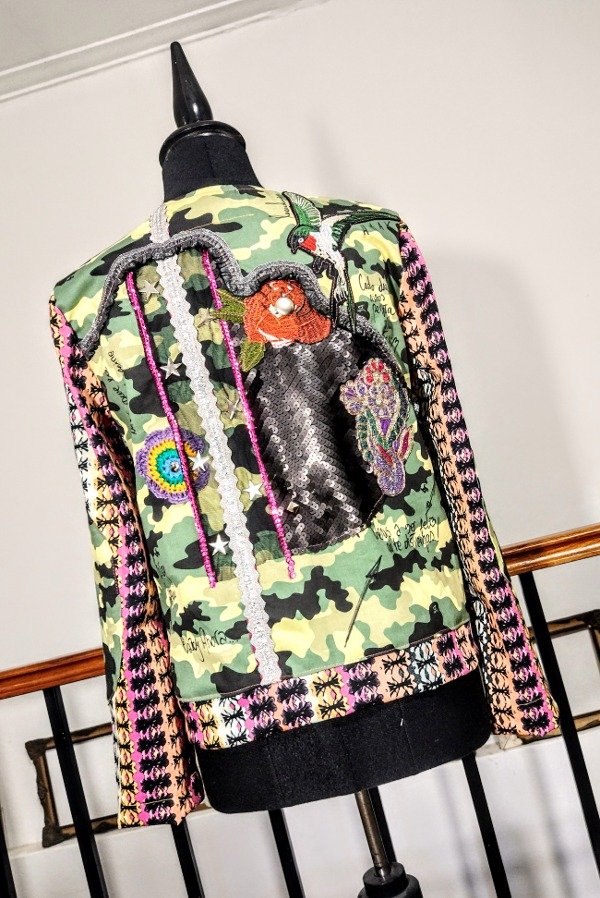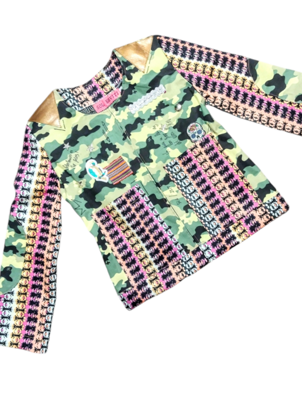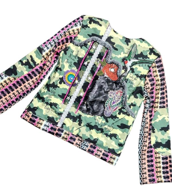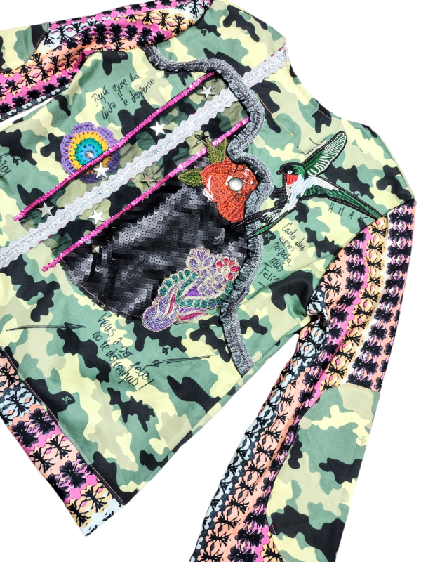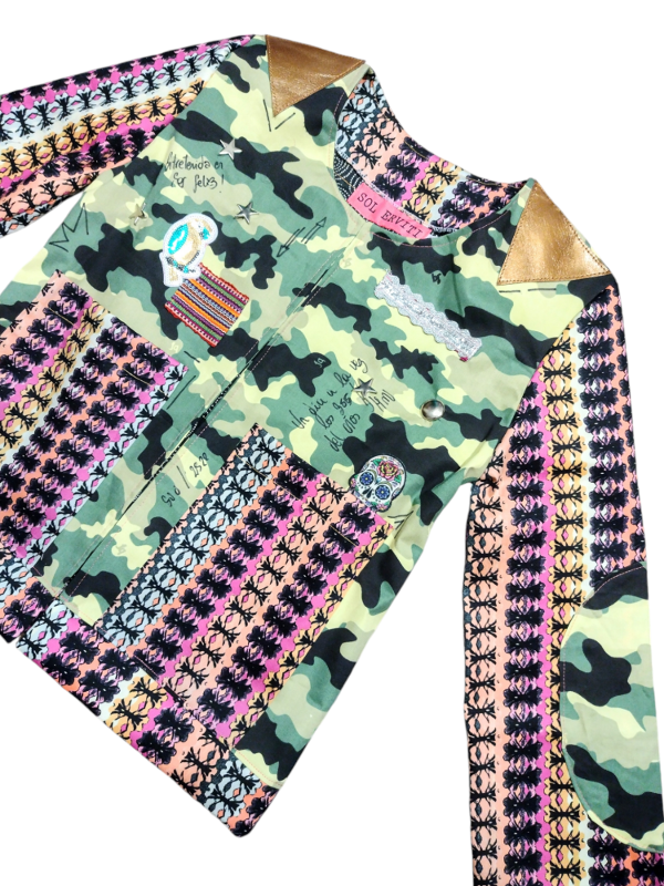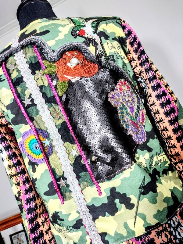 Chaqueta trabajada . Forrada. Medidas:largo total 60 cm / ancho pecho 48 cm / largo manga 55 cm . ( Talle M).